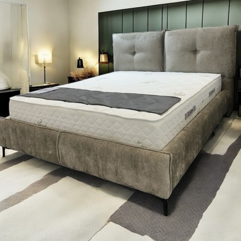 Κρεβάτι υφασμάτινο με ιδιαίτερη λεπτομέρεια το φάλτσο στις τραβέρσες.Κατασκευασμένο 100% στην ..