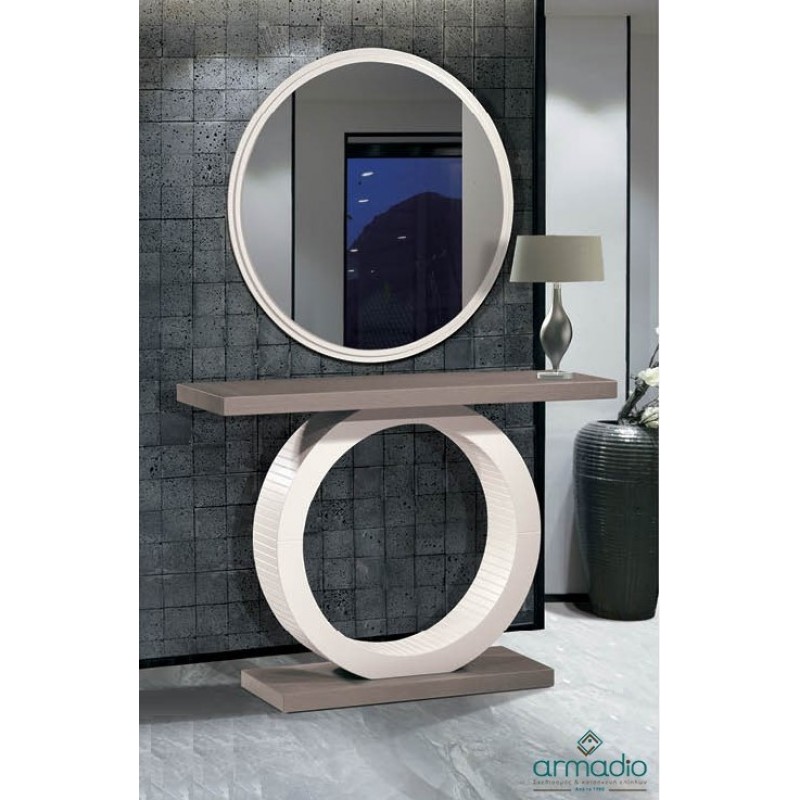 Μοναδικό έπιπλο εισόδου εξαιρετικής ποιότητας. Με στρογγυλή, ιδιαίτερη βάση. Κατασκευασμένο από ξύλο δρυς με συνδυασμό λάκας. Διαστάσεις: 120x40x89. Συνοδεύεται από στρογγυλό καθρέφτη με ξύλινο πλαίσιο διαστάσεως Φ90(ΚΟΣΤΟΣ 260). Χρώματα δικής σας επιλογής. Πωλούνται και ξεχωριστά.
