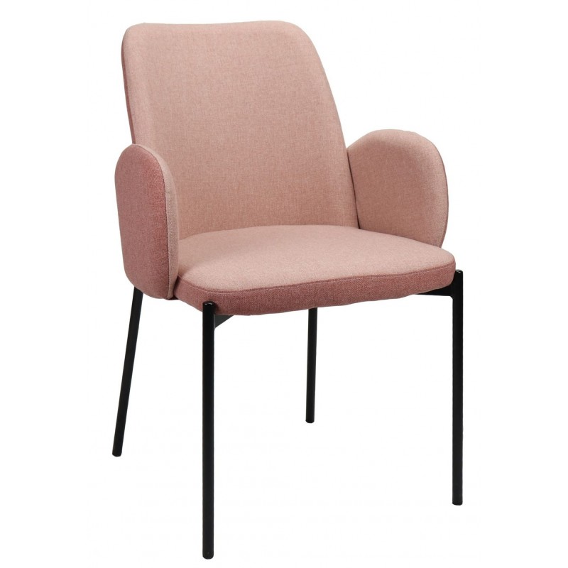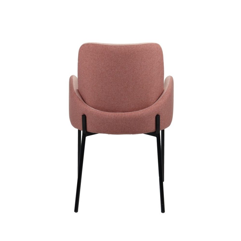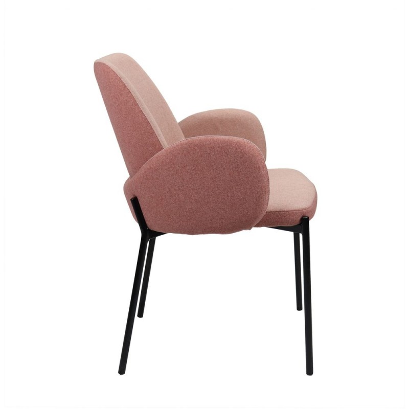 Μεταλλική πολυθρόνα με μαύρο σκελετό σε ροζ ύφασμα με διχρωμία.