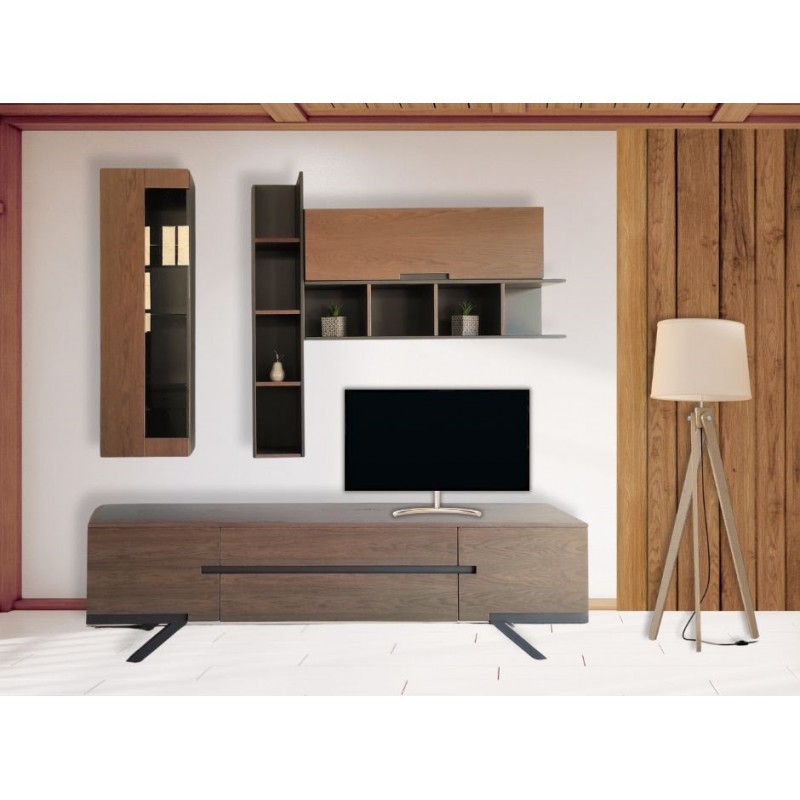 Σύνθεση για σαλόνι κορυφαίας ποιότητας. Κατασκευασμένη από ξύλο Δρυς με συνδυασμό λάκας και πόδι μεταλλικό.