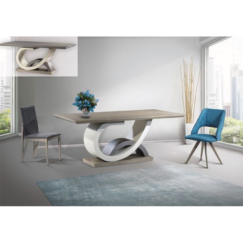 Μοντέρνα τραπεζαρία με μοναδικό σχεδιαστικό design στη βάση. Είναι κατασκευασμένη από ξύλο δρυς με συνδυασμό λάκας. Διαστάσεις: 200×100. Χρώματα δικής σας επιλογής. Οι διαστάσεις μπορούν να διαφοροποιηθούν κατόπιν επικοινωνίας.