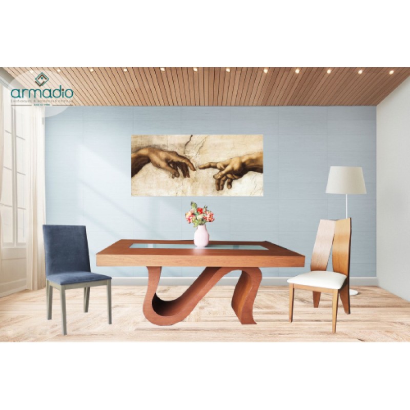 Μοντέρνα τραπεζαρία με εντυπωσιακή βάση και με ανάγλυφο στην επιφάνεια. Είναι κατασκευασμένη από ξ..