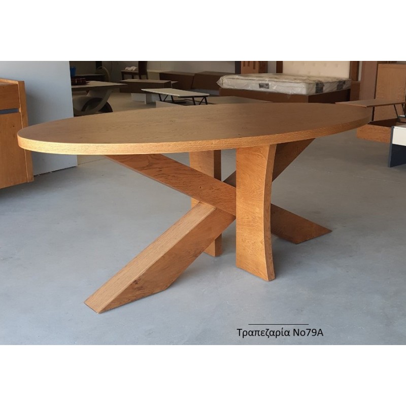 Μοντέρνα τραπεζαρία κατασκευασμένη από ξύλο ρουστίκ. Με επιφάνεια σε οβάλ σχήμα και εντυπωσιακά πόδια. Διαστάσεις: 200×100. Χρώμα δικής σας επιλογής. Οι διαστάσεις μπορούν να διαφοροποιηθούν κατόπιν επικοινωνίας.