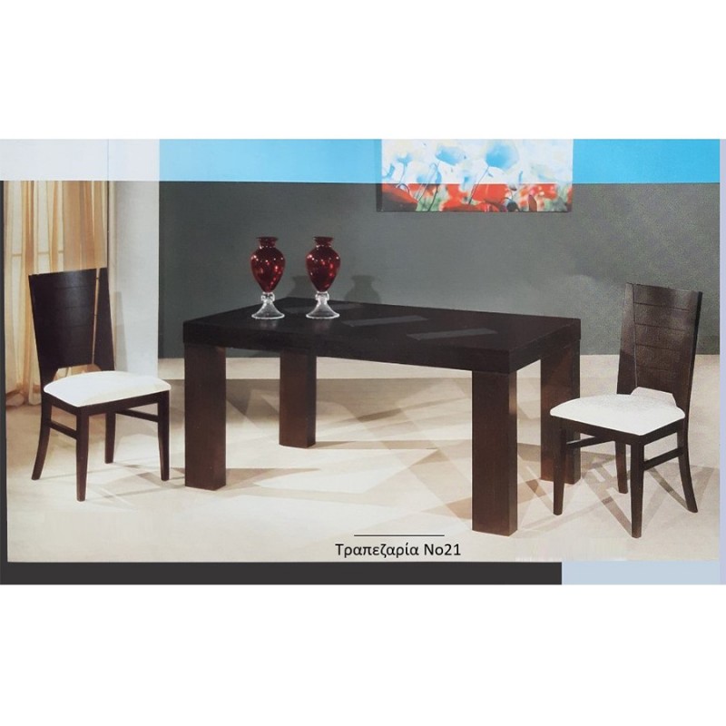 Μοντέρνα τραπεζαρία εξαιρετικής κατασκευής με ορθογώνιο πόδι. Με 3 διακοσμητικά τζάμια στην επιφάνειά της. Κατασκευασμένη από ξύλο δρυς. Διαστάσεις: 165×90 + προέκταση 45. Χρώμα δικής σας επιλογής. Οι διαστάσεις μπορούν να διαφοροποιηθούν κατόπιν επικοινωνίας.
