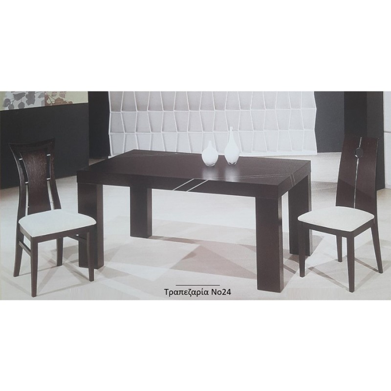 Μοντέρνα τραπεζαρία εξαιρετικής κατασκευής με ορθογώνιο πόδι. Με διακοσμητικές inox λεπτομέρειες στην επιφάνειά της. Κατασκευασμένη από ξύλο δρυς. Διαστάσεις: 165×90 + προέκταση 45. Χρώμα δικής σας επιλογής. Οι διαστάσεις μπορούν να διαφοροποιηθούν κατόπιν επικοινωνίας.